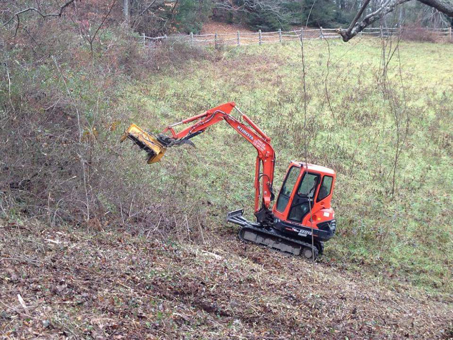 Forestry mulching is a really great way of both beautifying your space, while also contributing to the nutrients in the soil. With this method you’re able to clear your land and perhaps gain back lost ground to those wild blackberry bushes, black walnut trees, and so on, while mulching them down and re-depositing them to the soil.