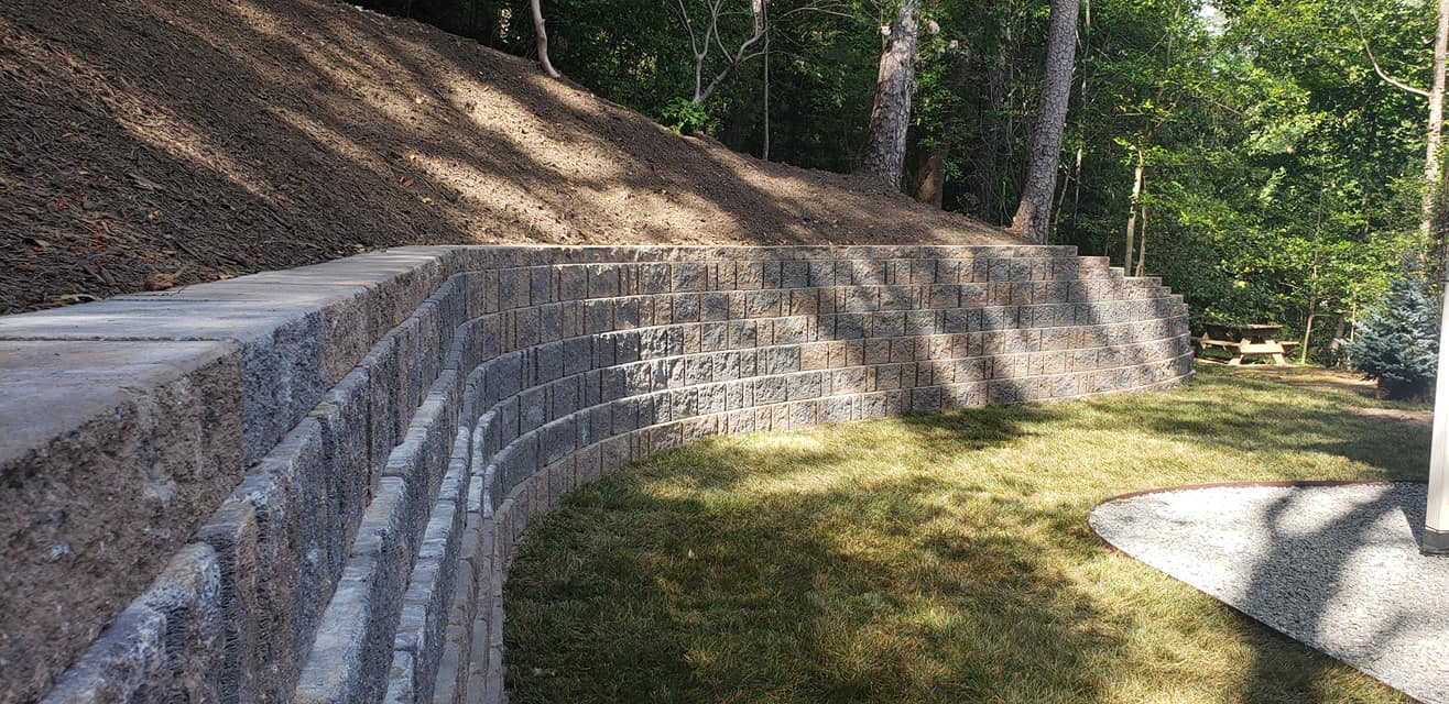 Retaining walls are a very common installation in western North Carolina. Our mountains and valleys are a beauty to behold, while also creating a lot of slopes in our backyards and cliff sides to navigate. These walls can help carve out accessible space for home and business owners.